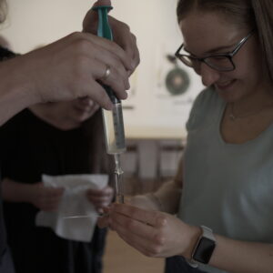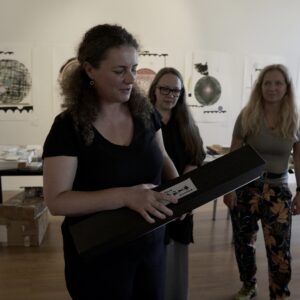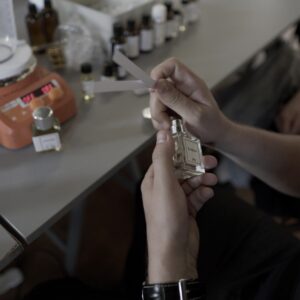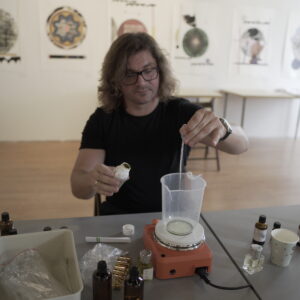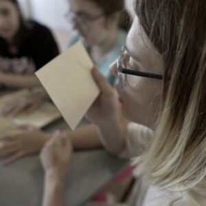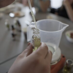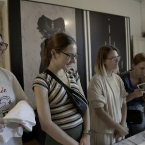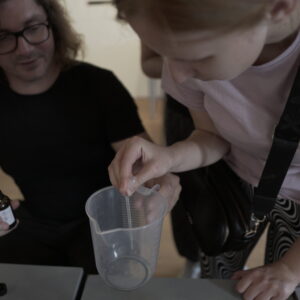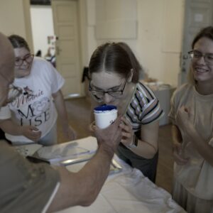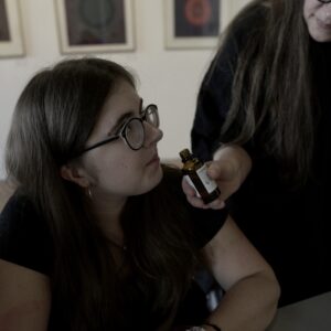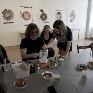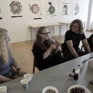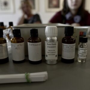 Drugiego dnia, pod okiem perfumiarza Jakuba Pietrynki, Uczestniczki skomponowały zapach grafiki w oparciu o zdobyte wcześniej multisensoryczne doświadczenia. Jesteście ciekawi, jak pachnie grafika? Zapachowy bukiet stworzyły nuty: lipy, cedru, cyprysu białego (skojarzenia z drewnianymi matrycami) trawy (asocjacje związane z papierem wytwarzanym z roślin) oraz świeży akord soli morskiej.
