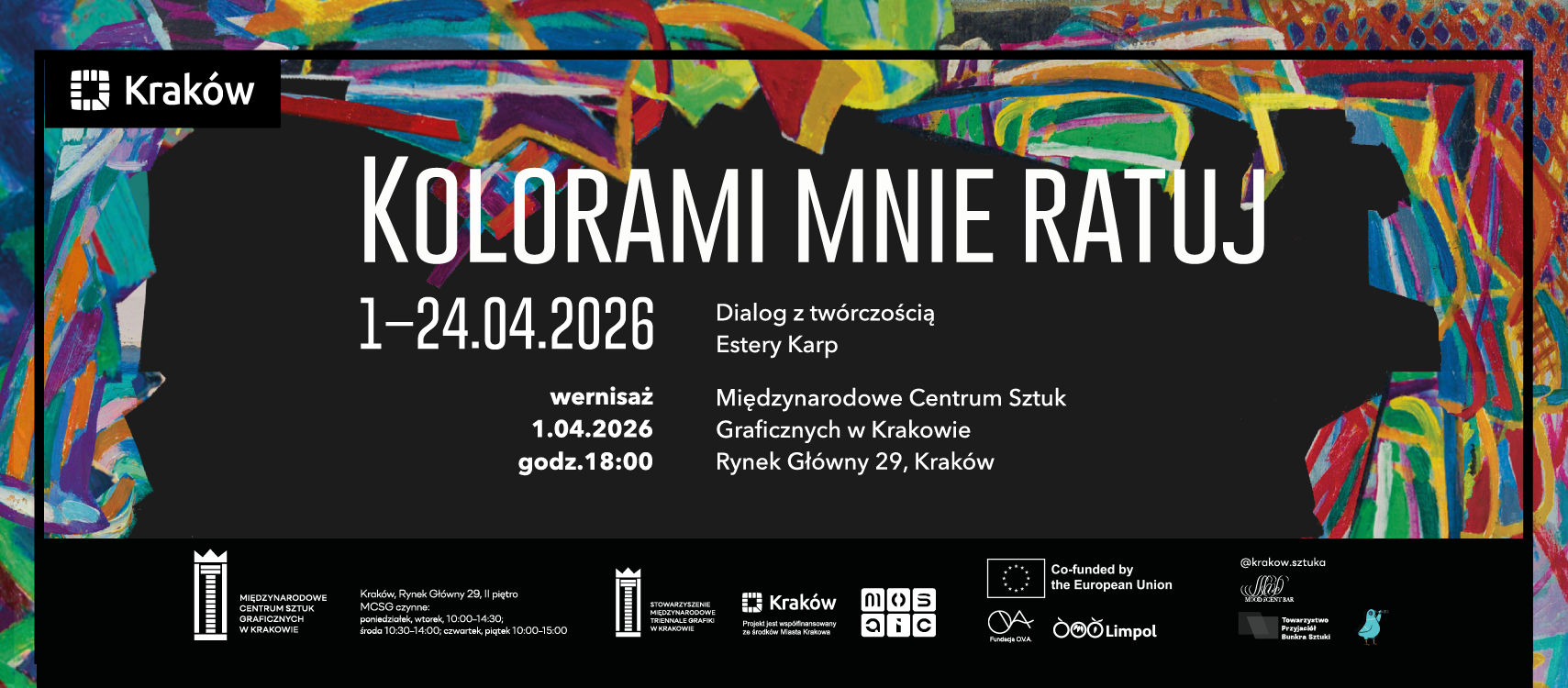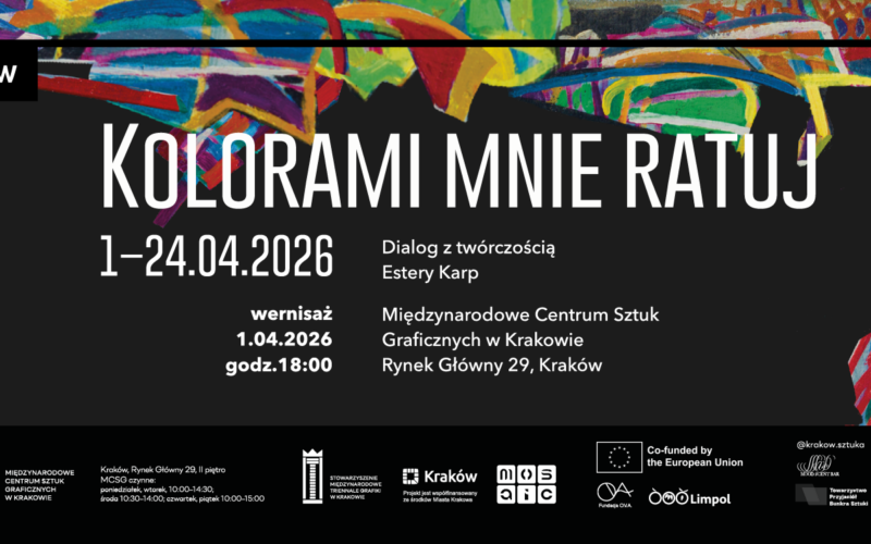 Wystawa “Kolorami mnie ratuj” poświęcona jest twórczości Estery Karp – zapomnianej dwudziestowiecznej malarki. Polki, Żydówki, mieszkanki Paryża. Projekt buduje międzypokoleniowy dialog wokół koloru jako nośnika emocji, pamięci i napięcia. Intensywne, ekspresyjne kompozycje Karp stają się punktem wyjścia dla współczesnych artystek i artystów, którzy podejmują z nimi rozmowę poprzez własne strategie twórcze. Kolor pełni tu rolę głównego medium komunikacji buduje obraz, ujawnia doświadczenie, tożsamość i wrażliwość. Na wystawie oglądamy kilka oryginalnych obrazów Estery Karp z kolekcji Ewy i Dariusza Jodłowskich oraz kilkanaście dzieł współczesnych artystów i artystek, tworzących w różnorodnych technikach i mediach, reprezentujących różne pokolenia. Zestawienie prac pozwala prześledzić, jak barwa przekracza historyczne ramy i pozostaje żywym językiem sztuki. Wystawa nie rekonstruuje przeszłości, ale uruchamia przestrzeń spotkania intensywną, zmysłową i otwartą na nowe interpretacje.