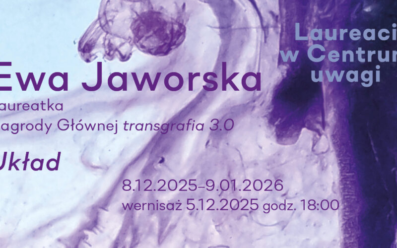 Wystawa Układ Ewy Jaworskiej, laureatki Nagrody Głównej konkursu transgrafia 3.0 w ramach Międzynarodowego Triennale Grafiki w Krakowie 2024, jest kontynuacją badań artystki nad procesem przemiany, zaniku i trwania w czasie. Składają się na nią dwie części – animacje dokumentujące proces topnienia barwnych figur lodowych oraz cykl linorytów – poliptyk, złożony z sześciu odrębnych grafik, które dopiero po zestawieniu tworzą pełną całość – kompozycję przypominającą szachownicę z układem postaci w ruchu. Linoryt staje się zapisem porządku, strukturą, w której pojedyncze elementy nabierają znaczenia dopiero w relacji z całością.